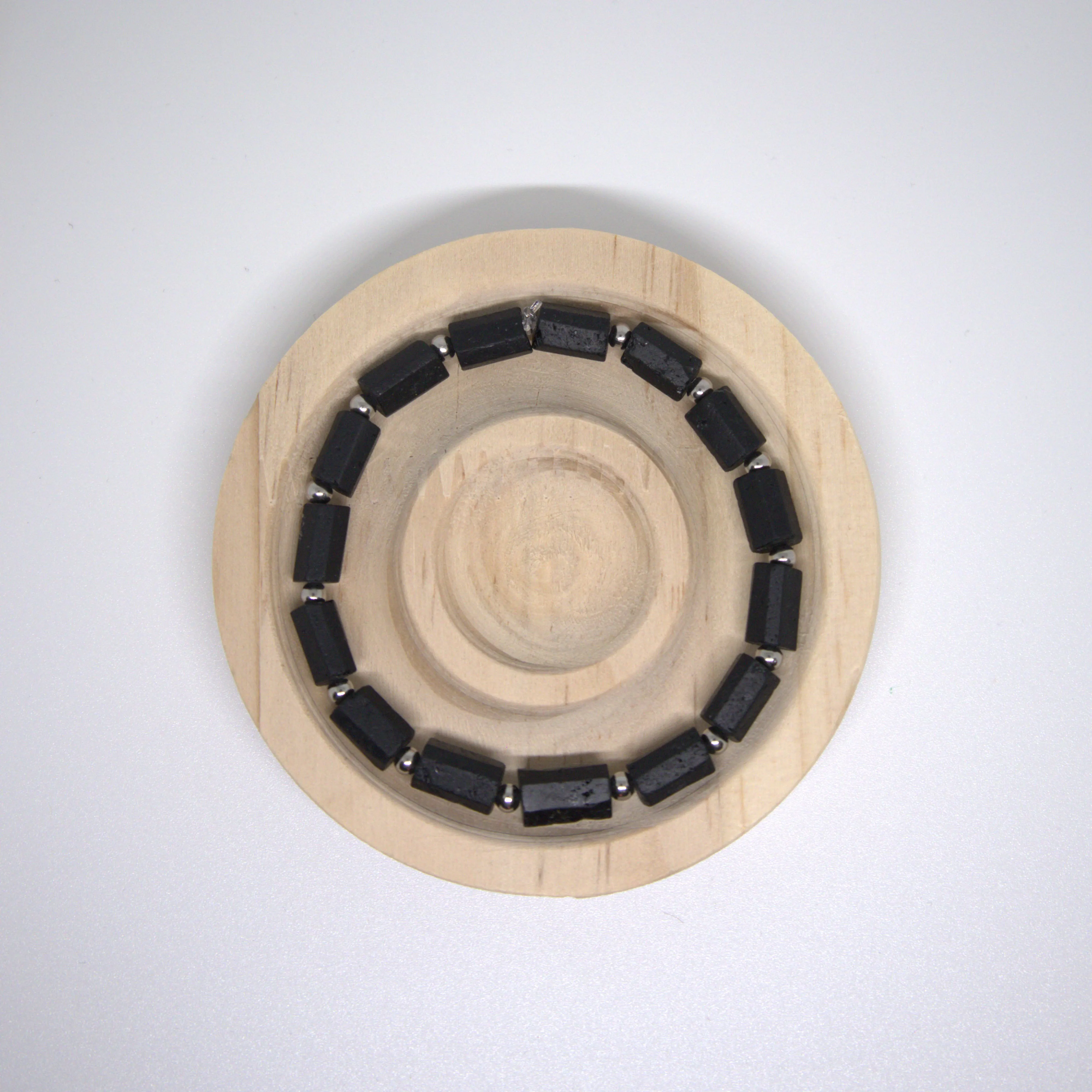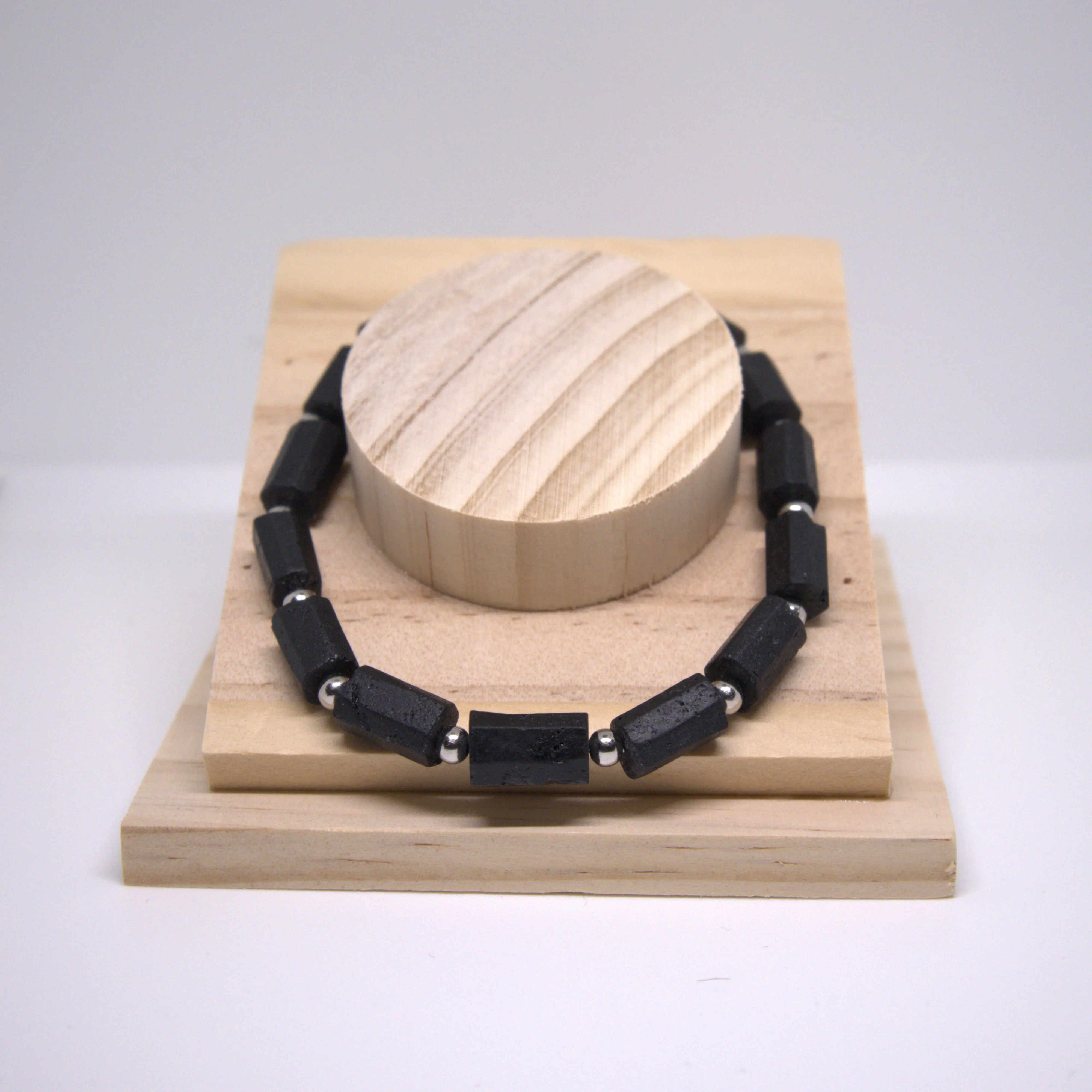 Najmocniejsza bransoletka ochronna w CUD Nibiru. Surowe, nieregularne słupki czarnego turmalinu tworzą minimalistyczną, mocną formę, która od razu wygląda jak tarcza.