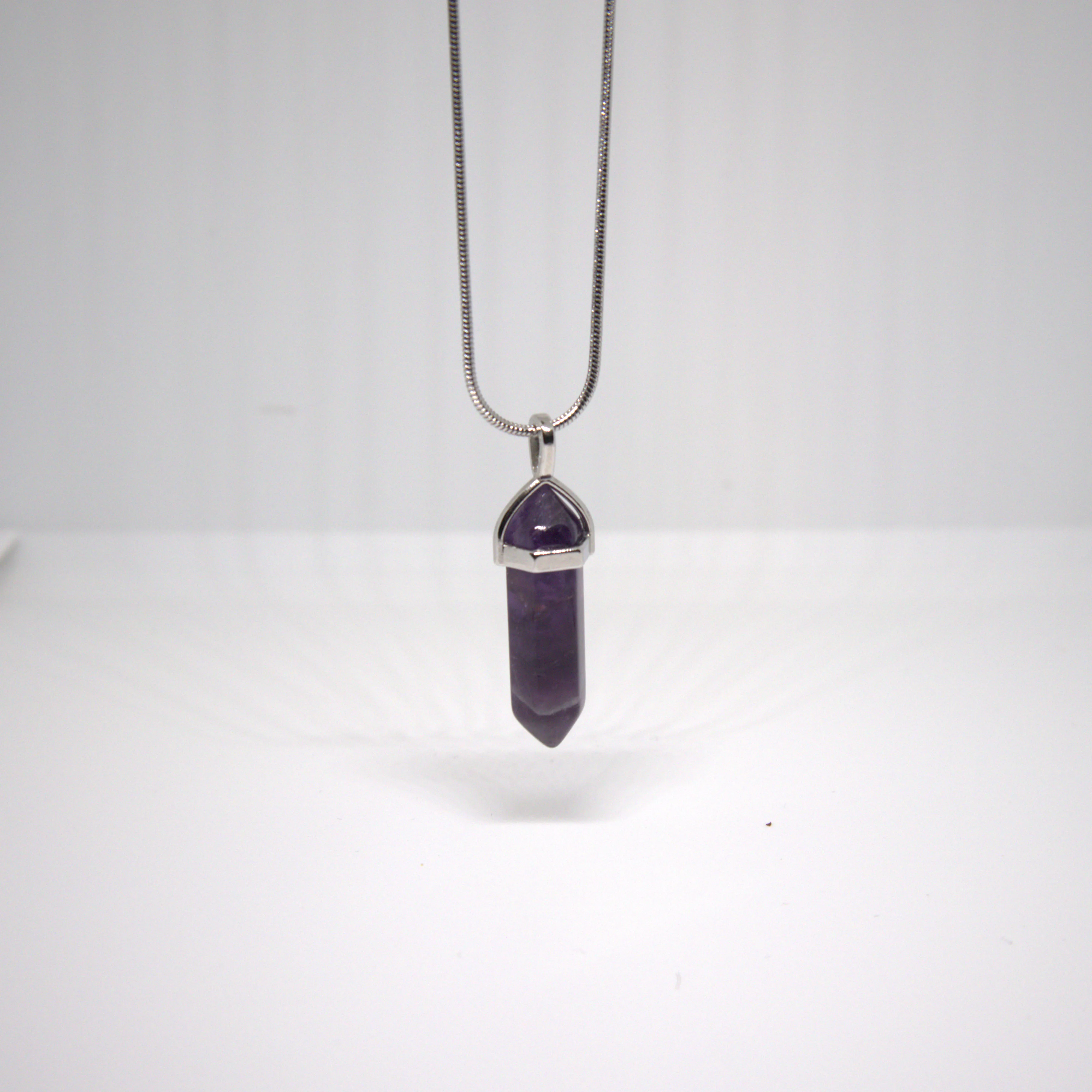Naszyjnik z ametystu w formie grotu na delikatnym łańcuszku 1 mm o długości 60 cm. Stal nierdzewna. Subtelny amulet spokoju ducha, który pomaga wyciszyć myśli i wrócić do wewnętrznej równowagi.
