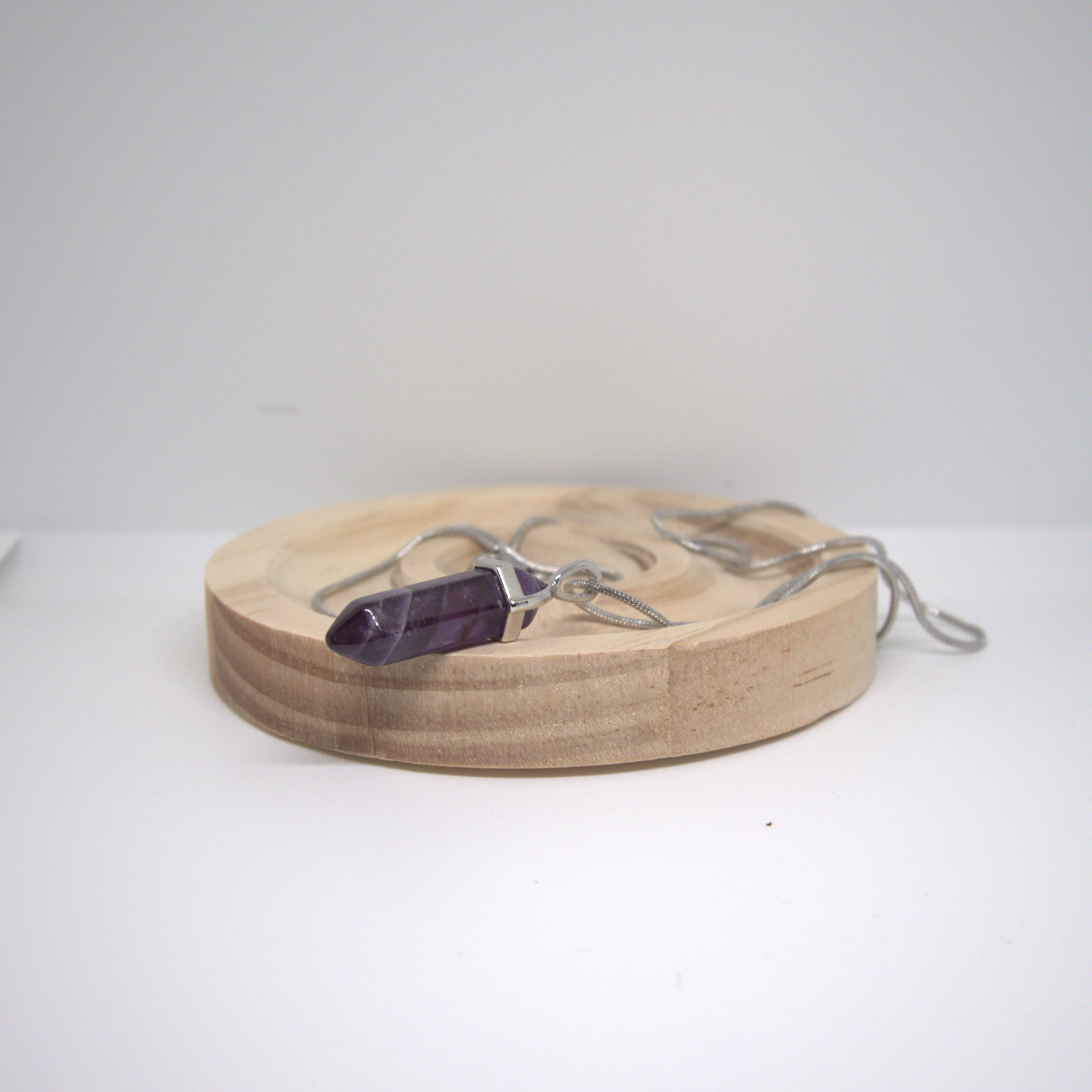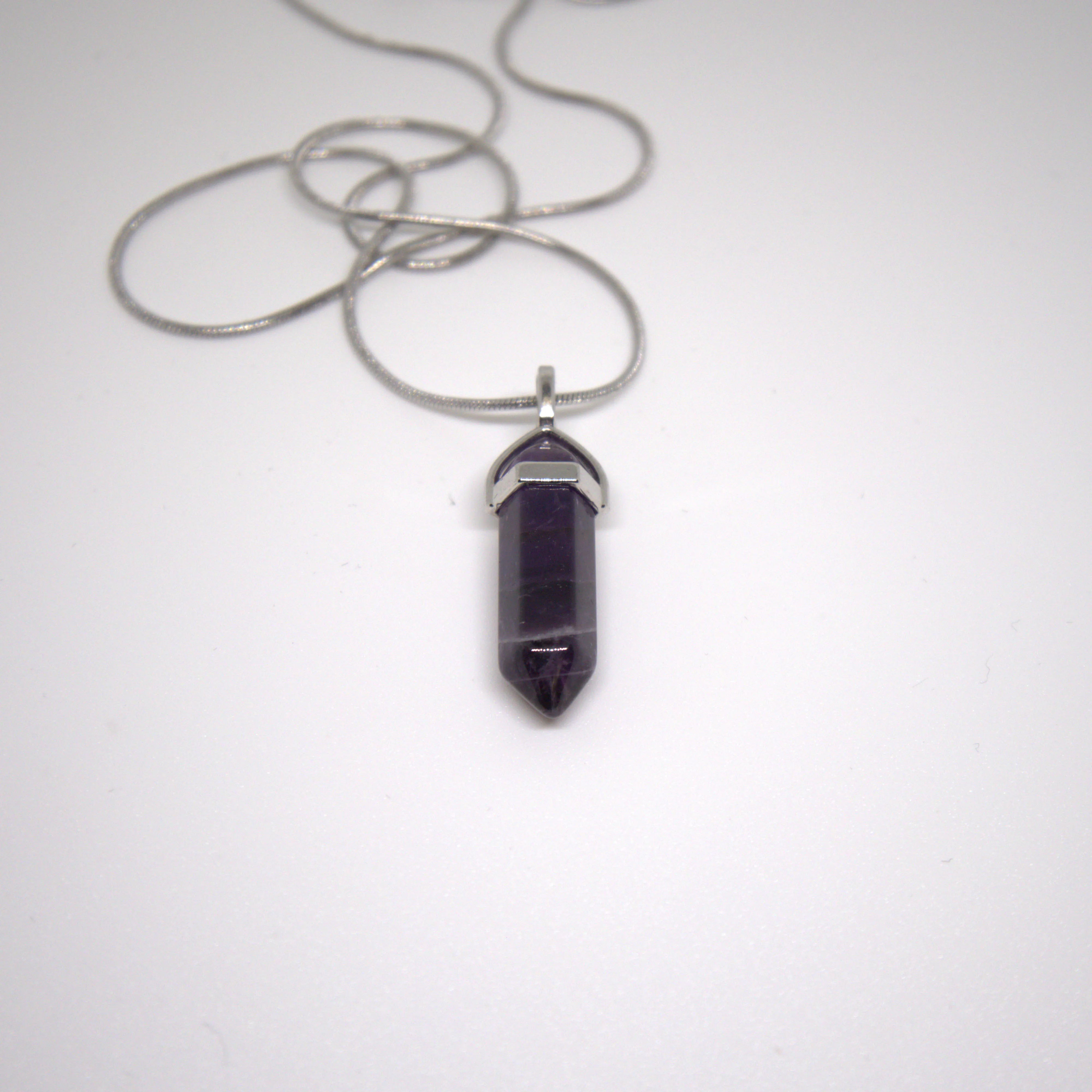 Naszyjnik z ametystu – grot – łańcuszek 60 cm – stal nierdzewna – amulet spokoju ducha
