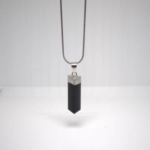 Naszyjnik z czarnego turmalinu w formie grotu na delikatnym łańcuszku 1 mm o długości 60 cm. Stal nierdzewna. Subtelny amulet ochrony energetycznej, który pomaga chronić własną energię i odcinać się od negatywnych wpływów.