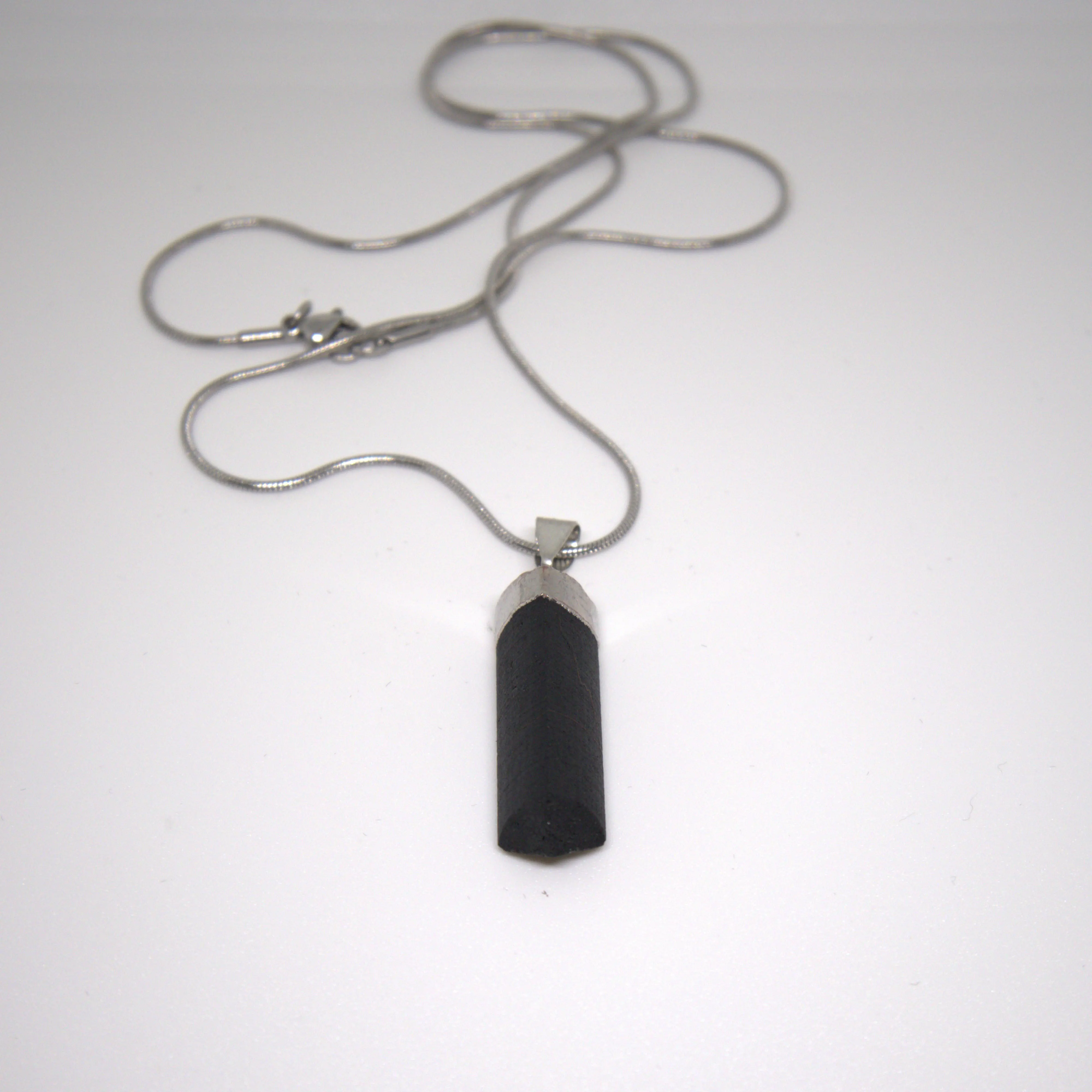 Naszyjnik z czarnego turmalinu – grot – łańcuszek 60 cm – stal nierdzewna – amulet ochrony energetycznej