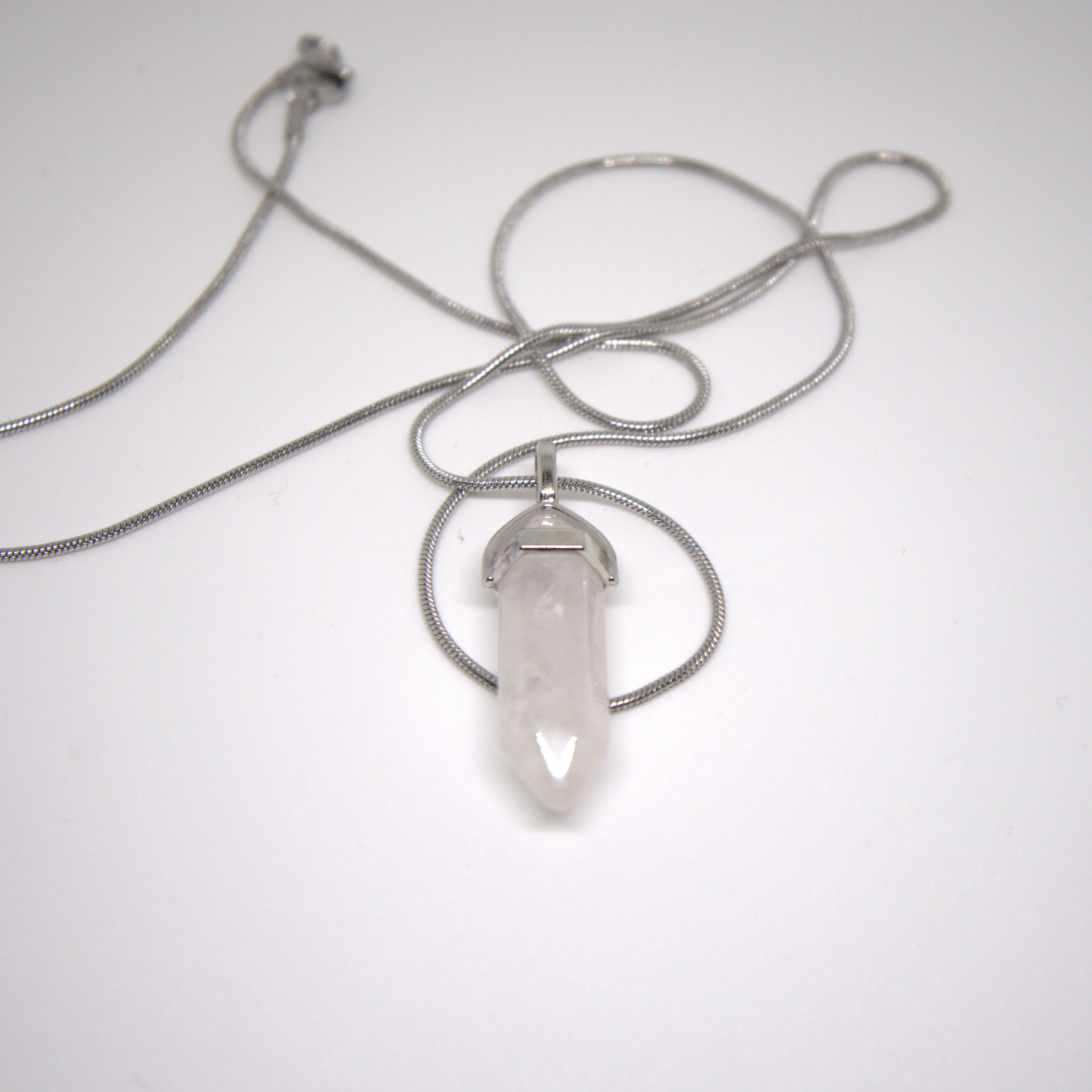 Naszyjnik z kryształu górskiego - grot - łańcuszek 60 cm - stal nierdzewna - amulet oczyszczenia