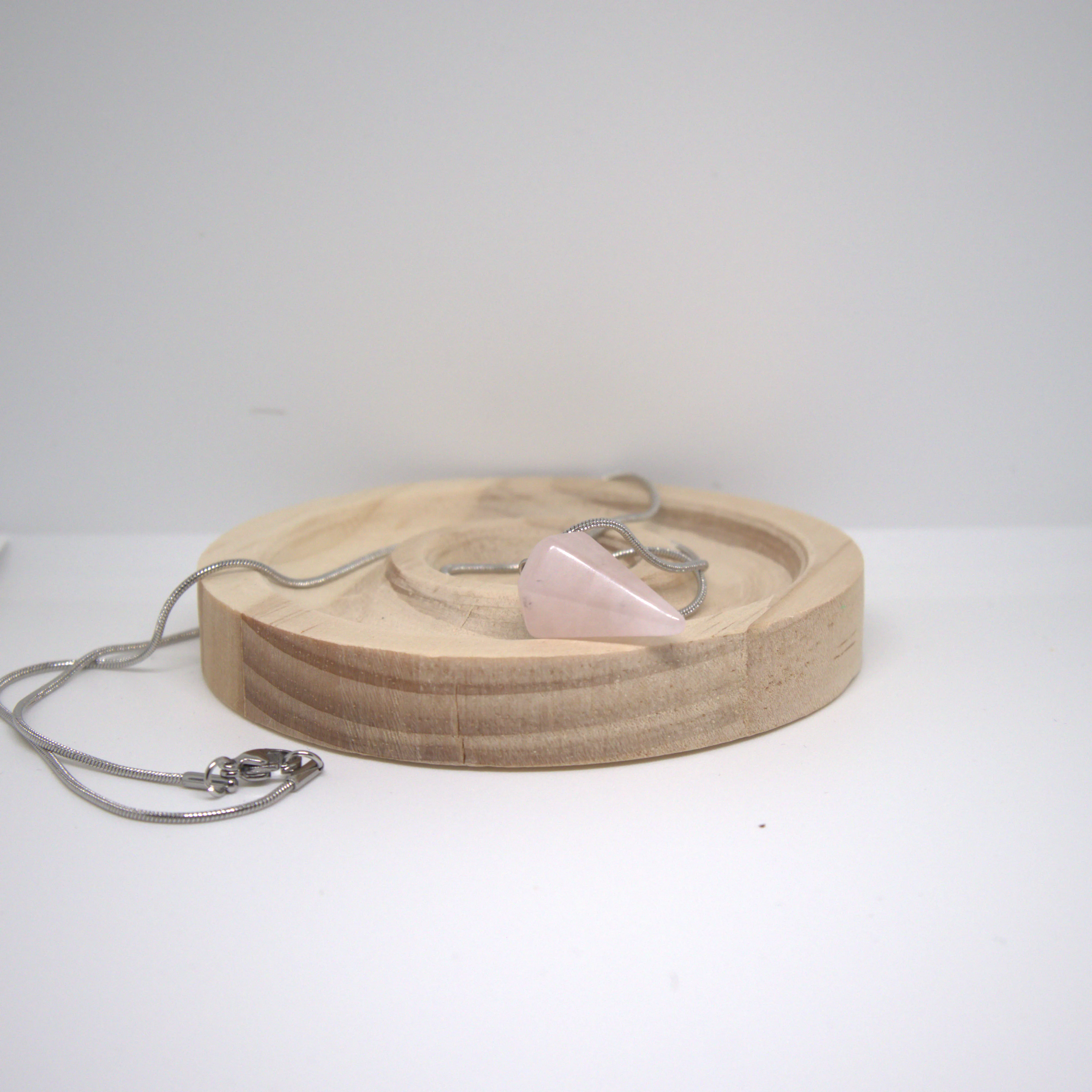 To naszyjnik z kwarcu różowego w kształcie grotu, zawieszony na delikatnym łańcuszku o grubości 1 mm i długości 60 cm. Całość wykonana jest ze stali nierdzewnej. Pasuje do minimalistycznych stylizacji, ale równie dobrze odnajduje się jako dyskretny akcent przy bardziej eleganckich zestawach. To wybór dla osób, które chcą nosić przy sobie coś, co przypomina o łagodności i bliskości.