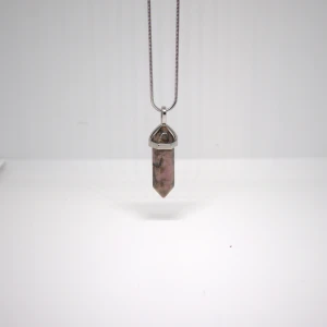 Naszyjnik z rodonitu w formie grotu na delikatnym łańcuszku 1 mm o długości 60 cm. Stal nierdzewna. Subtelny amulet ukojenia serca, który wspiera równowagę emocjonalną, łagodność wobec siebie i spokojniejsze przechodzenie przez trudne relacje oraz napięcia.