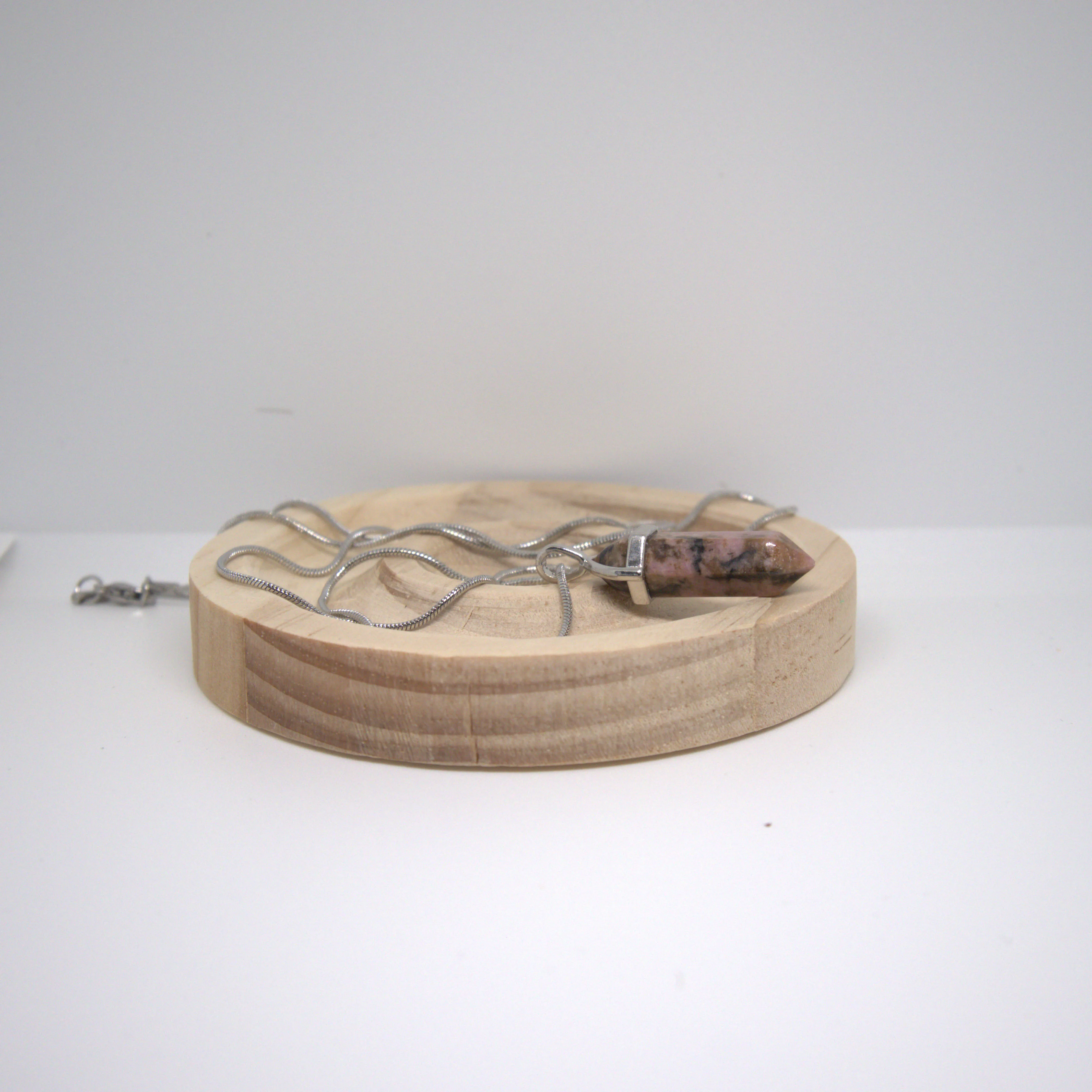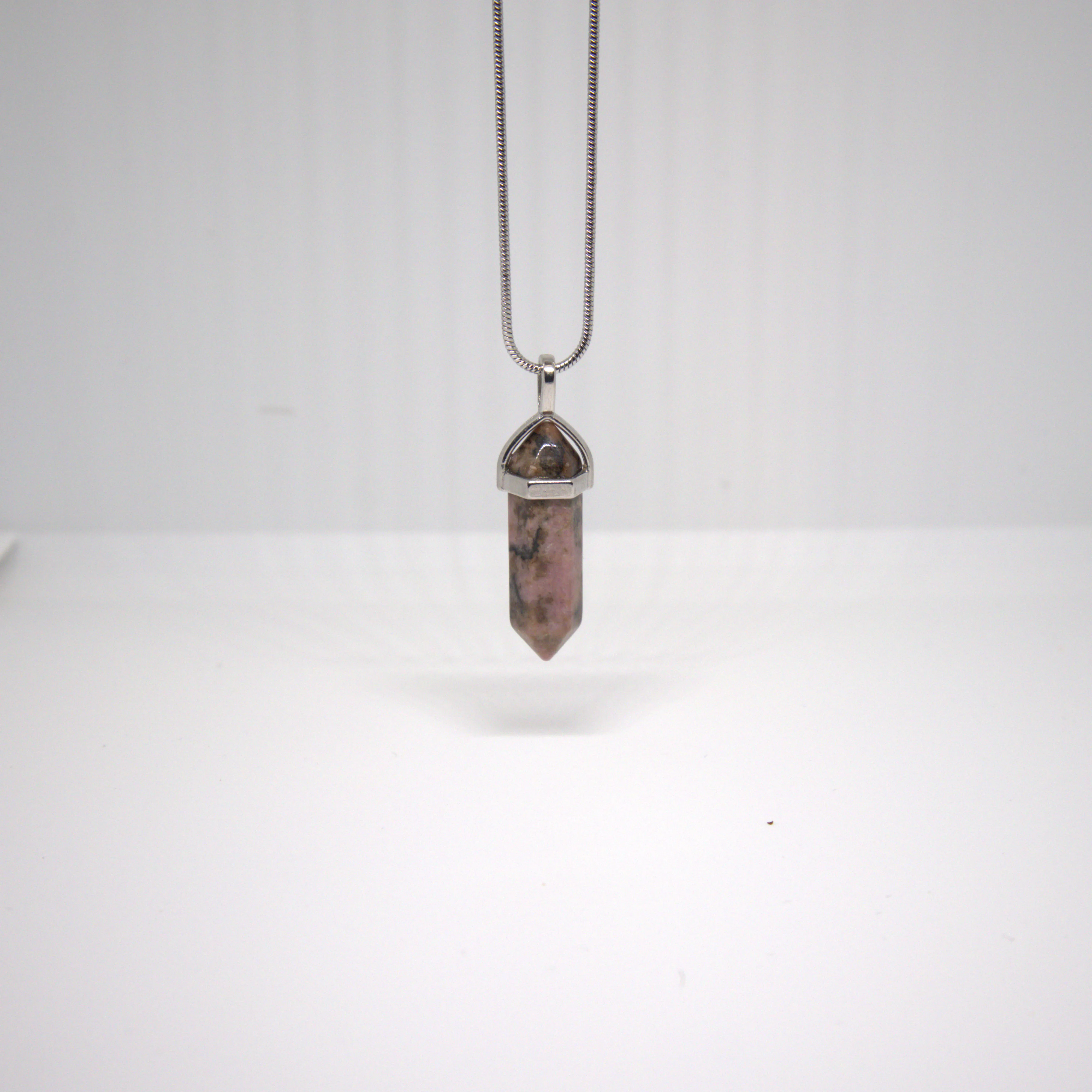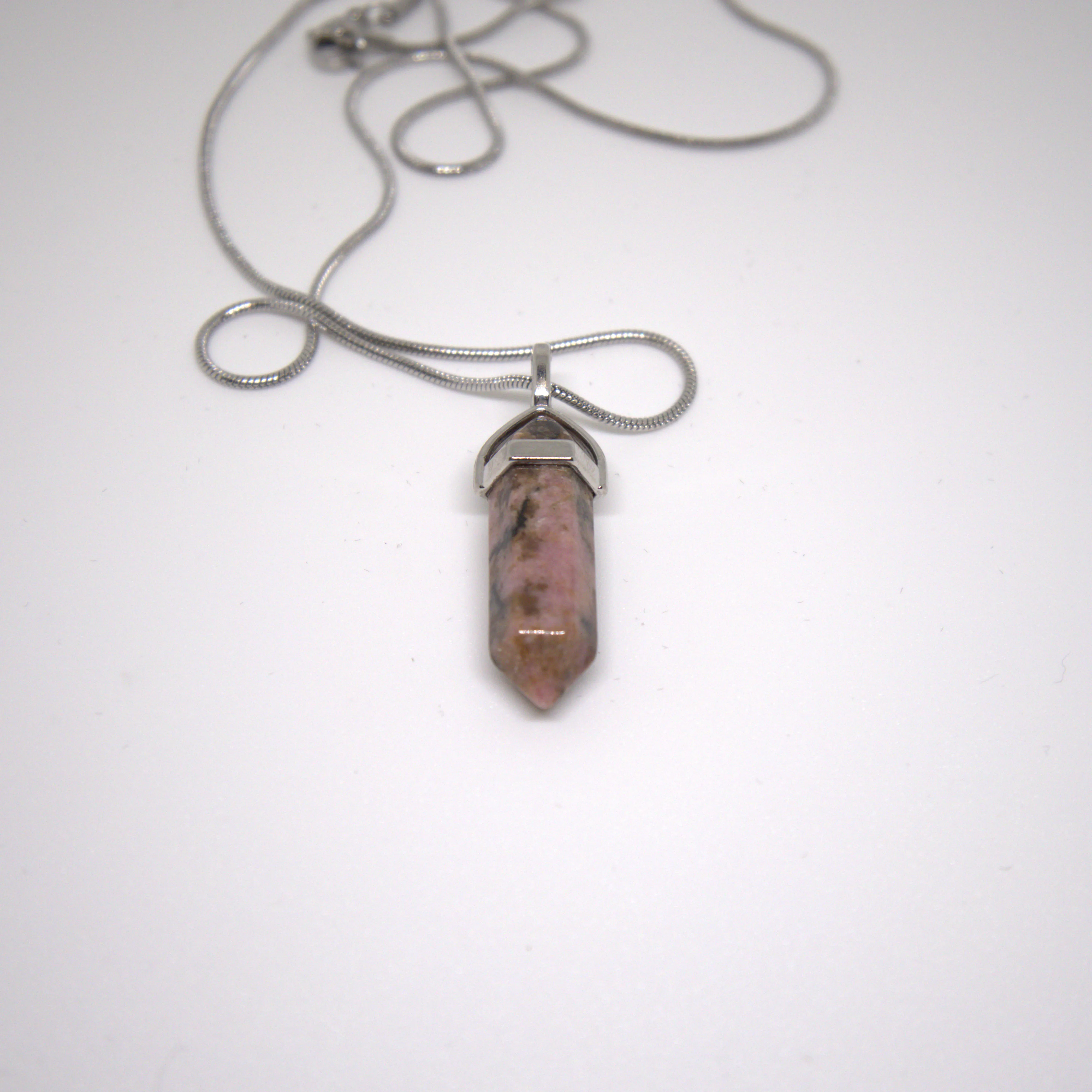 Naszyjnik z rodonitu - grot - łańcuszek 60 cm - stal nierdzewna - amulet ukojenia serca