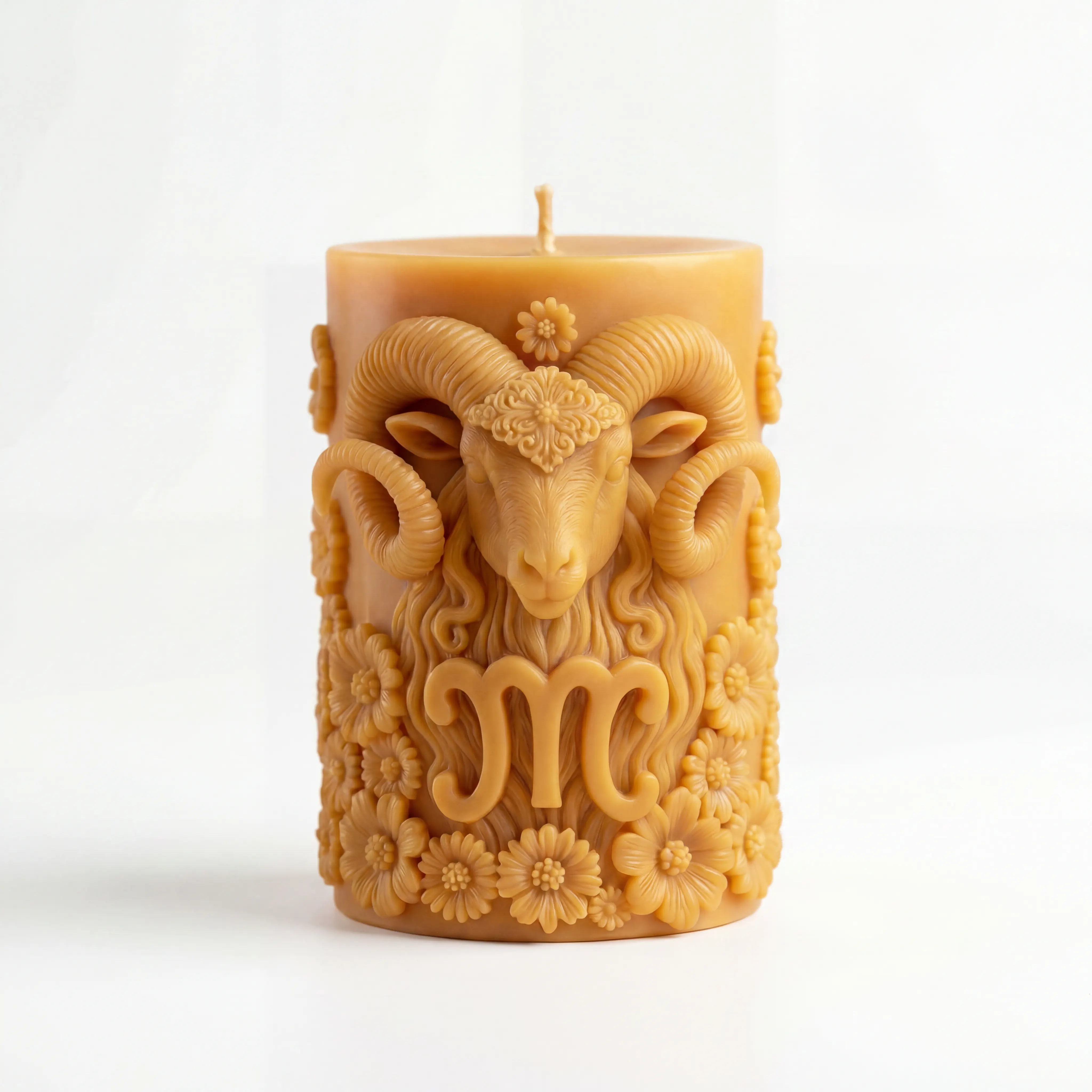 Świeca intencyjna Baran – naturalny wosk pszczeli – 5 × 9 cm